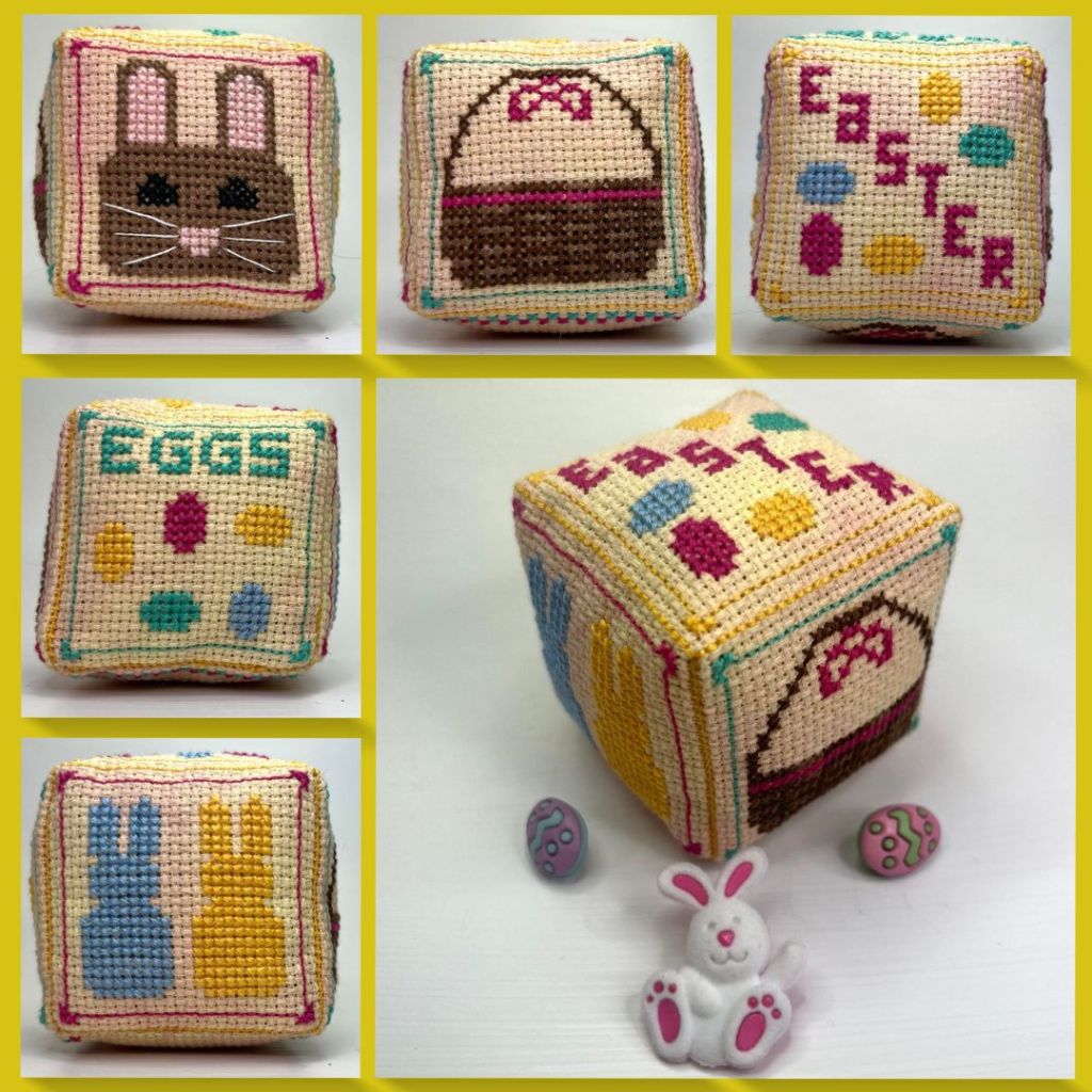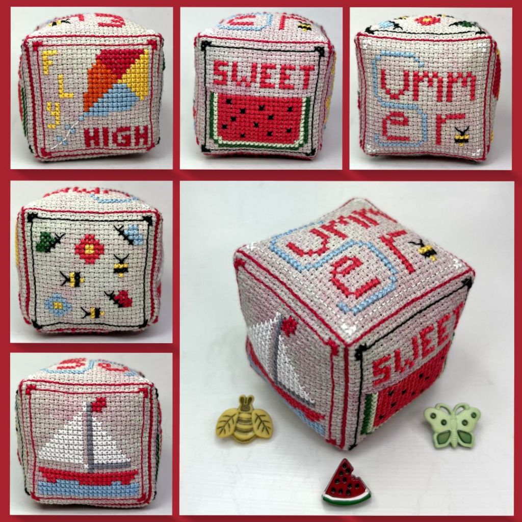 These small cubes are by far my favorite things to design, the ideas are absolutely endless! Each cube is stitched on one piece of fabric, which makes it very easy to sew the sides together into the cube shape. Just stuff, sew, and go! Want to try them out, but afraid to take the leap? Check out my freebies page, where you can find my free cube “Garden Friends” and tutorial.